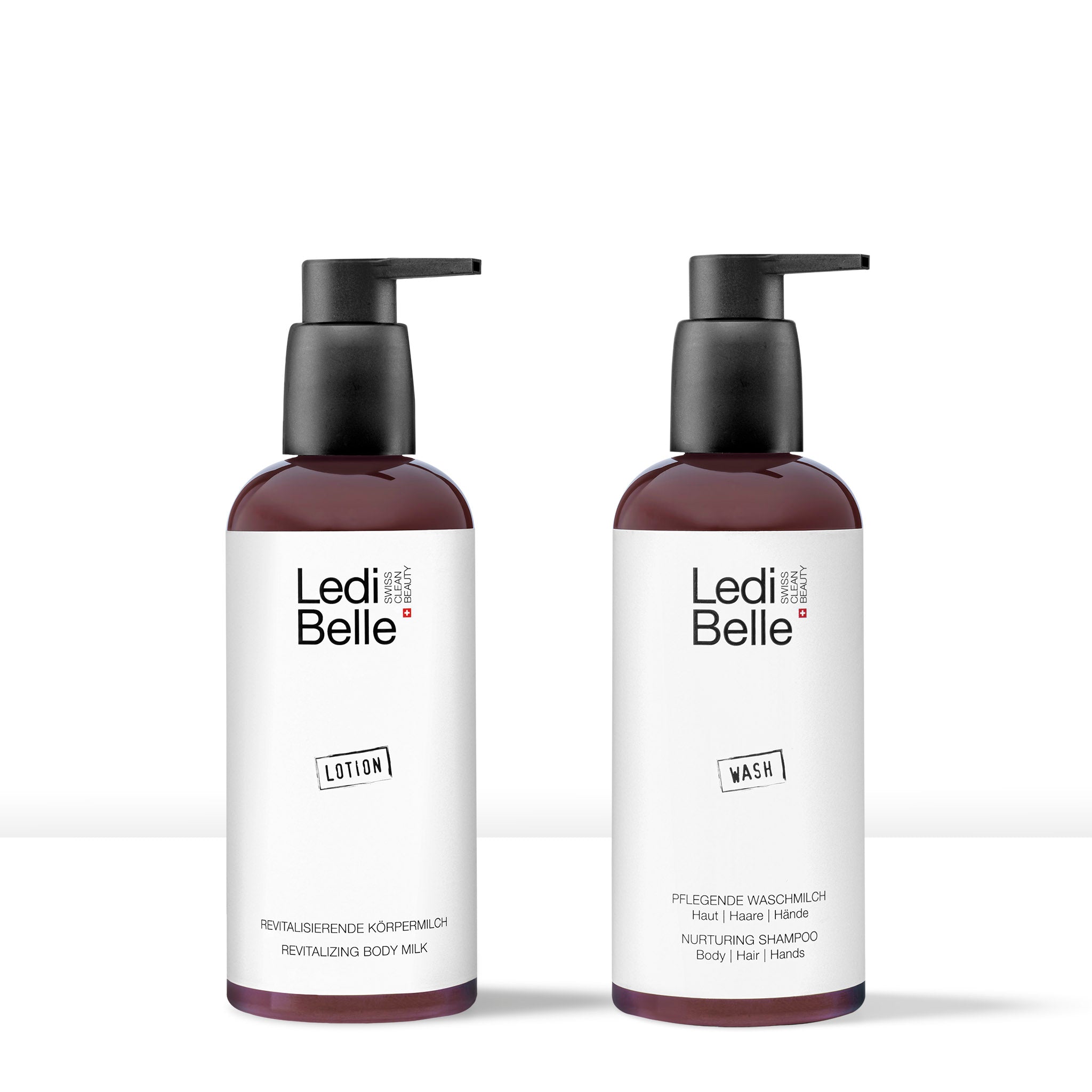 Unsere Körperpflege in nachfüllbaren Pumpspendern aus 100% Recyclingmaterial und 100% recyclebar.